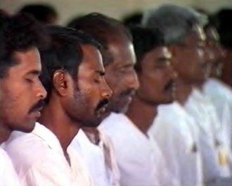 Un groupe en Inde pratiquant Vipassana qui peut se traduire par « développement de la vision supérieure ».